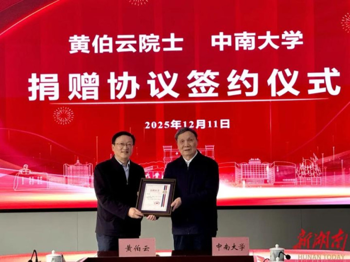 12月11日上午的中南大学校园,掌声如潮涌动。在庄重的捐赠协议签约仪式上,中国工程院院士黄伯云将个人所获“中国材料研究学会终身成就奖”税后687000元人民币,悉数赠予母校。当捐赠证书递到手中时,这位年近八旬的科学家眼中闪着光:“我的每一点成就,都扎根在中南的土壤里。能为学校做点事,是我最踏实的心愿。”